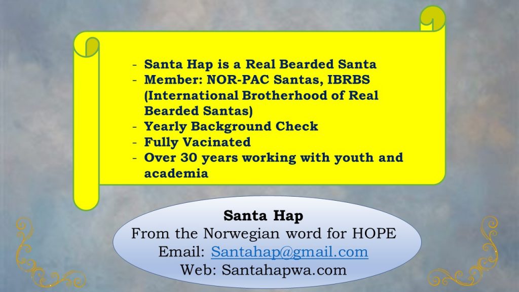 Santa Hap is a Real Bearded Santa, Available for Photo Sessions/Mini Sessions, Community Gatherings, Corporate Parties, Home Visits, Hospital Visits, Tree Lighting, Military functions and more.